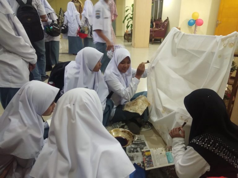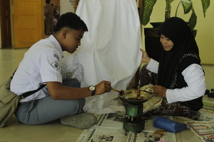 Salah satu daya tarik pada pameran ini, yaitu dari sektor ekonomi kreatif dibidang batik juga memberikan pengetahuan kepada siswa/siswi dan para pengunjung bagaimana cara mencanting batik dan langsung praktek.(Mellya/GMP)